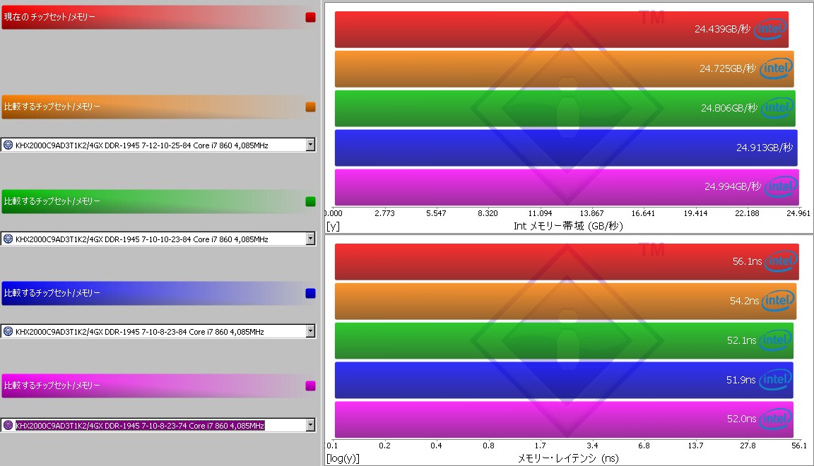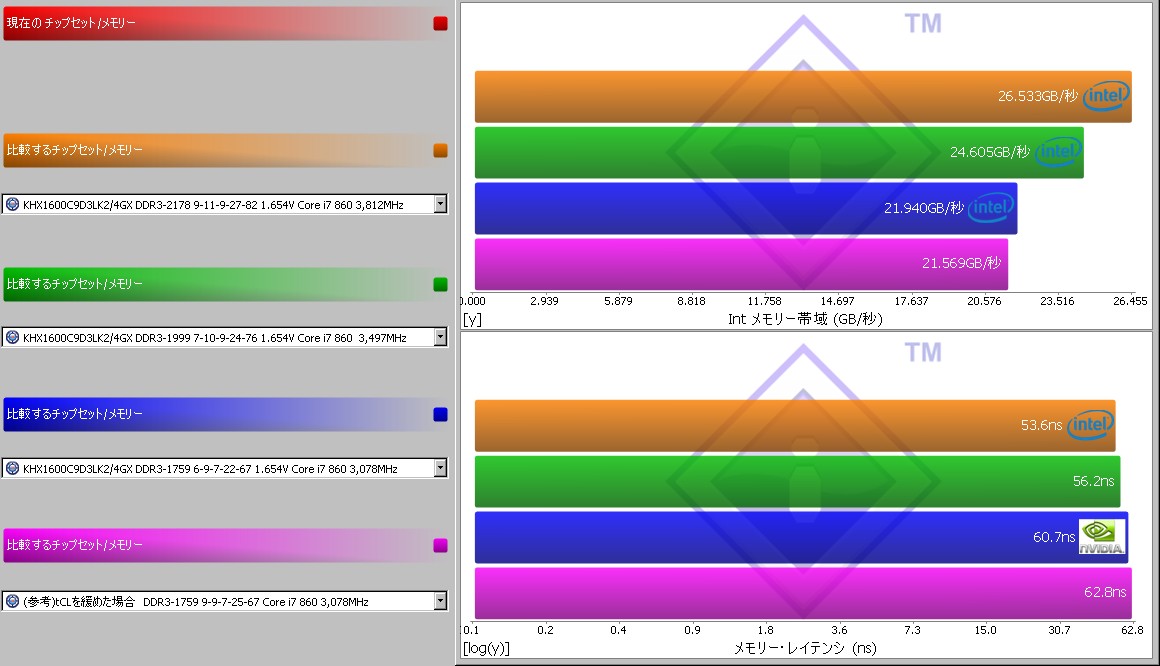 チップが不明なので特殊な仕様なのかもしれませんが、一般的なチップではtRRD=6ns、tWTR・tRTP=7.5ns、tWR=15nsが規定値になります。しかしProfile2ではtRRDが、Profile1では全てがオーバーしています。