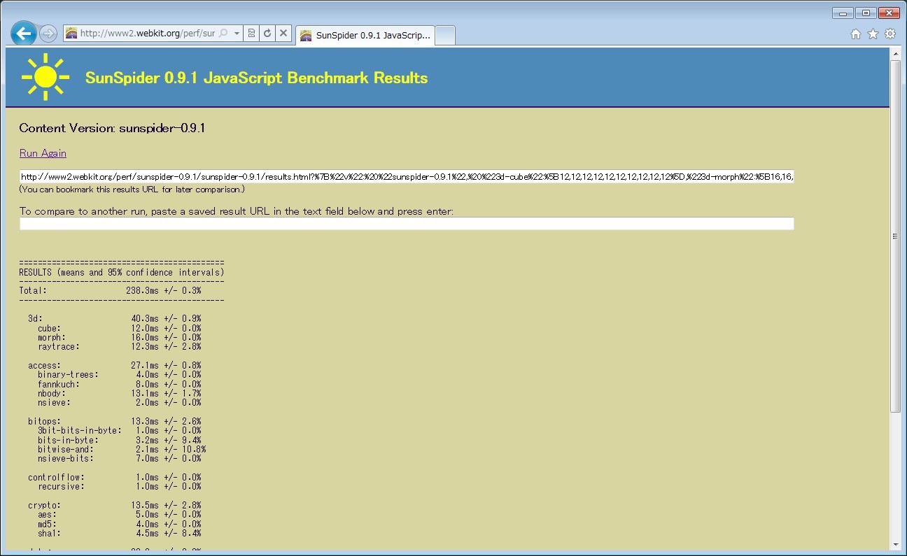参加用の他のベンチもそうですが、特にSunSpider JavaScript Benchmarkに関してTurbo Core Technologyは非常にスコアアップに貢献してくれたと感じました。